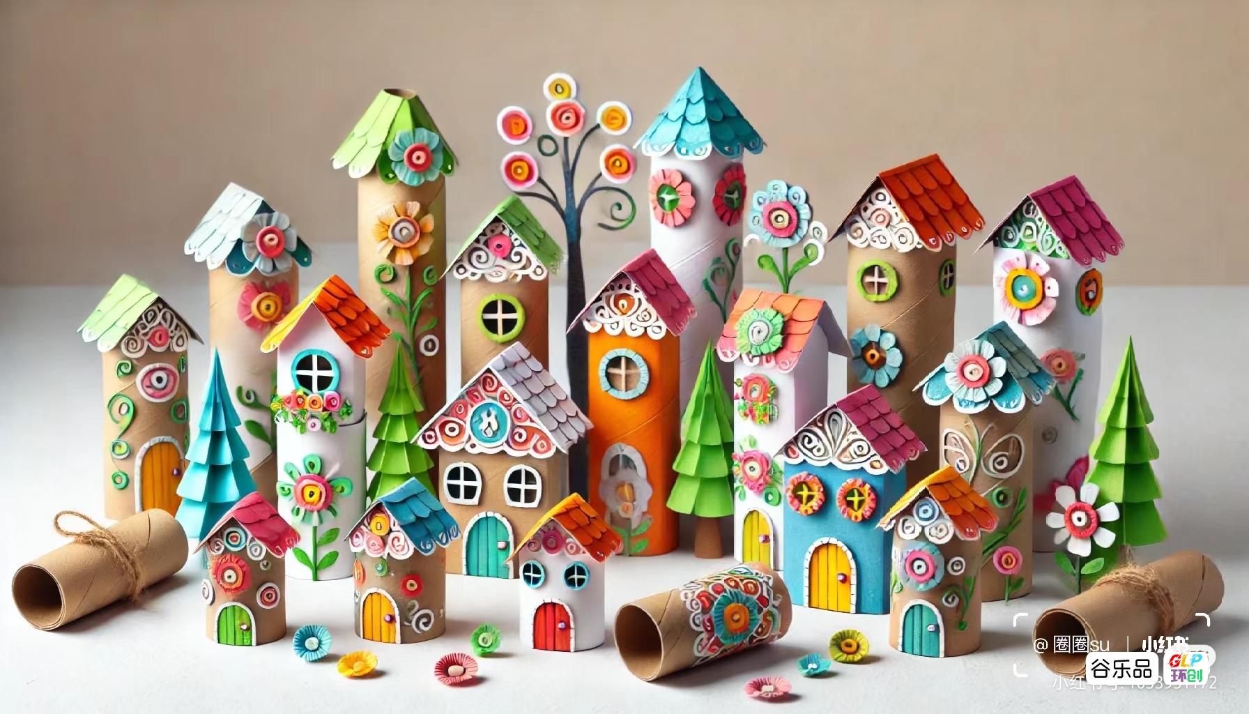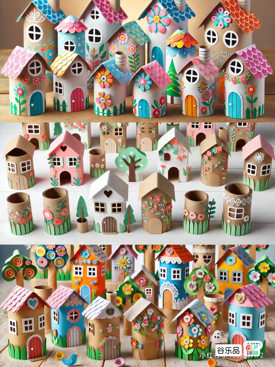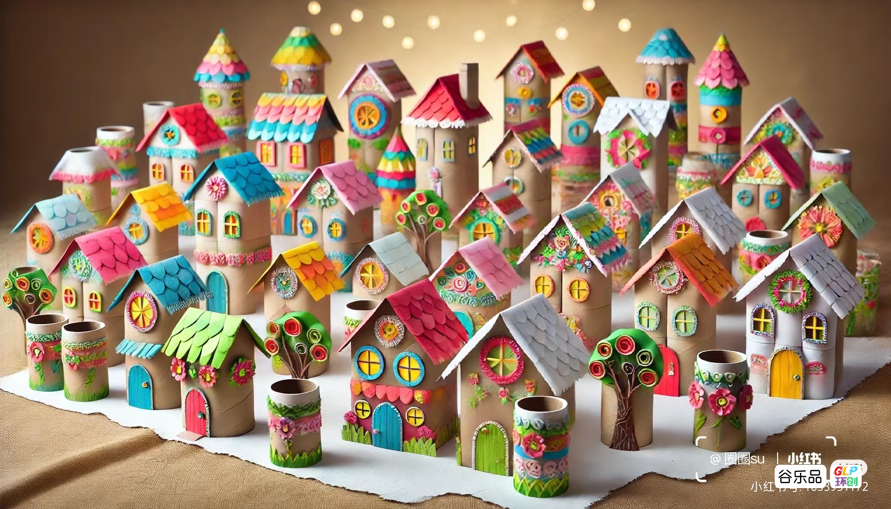 纸筒制作的房子群彩色房子