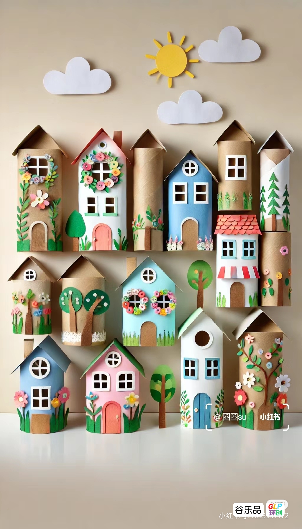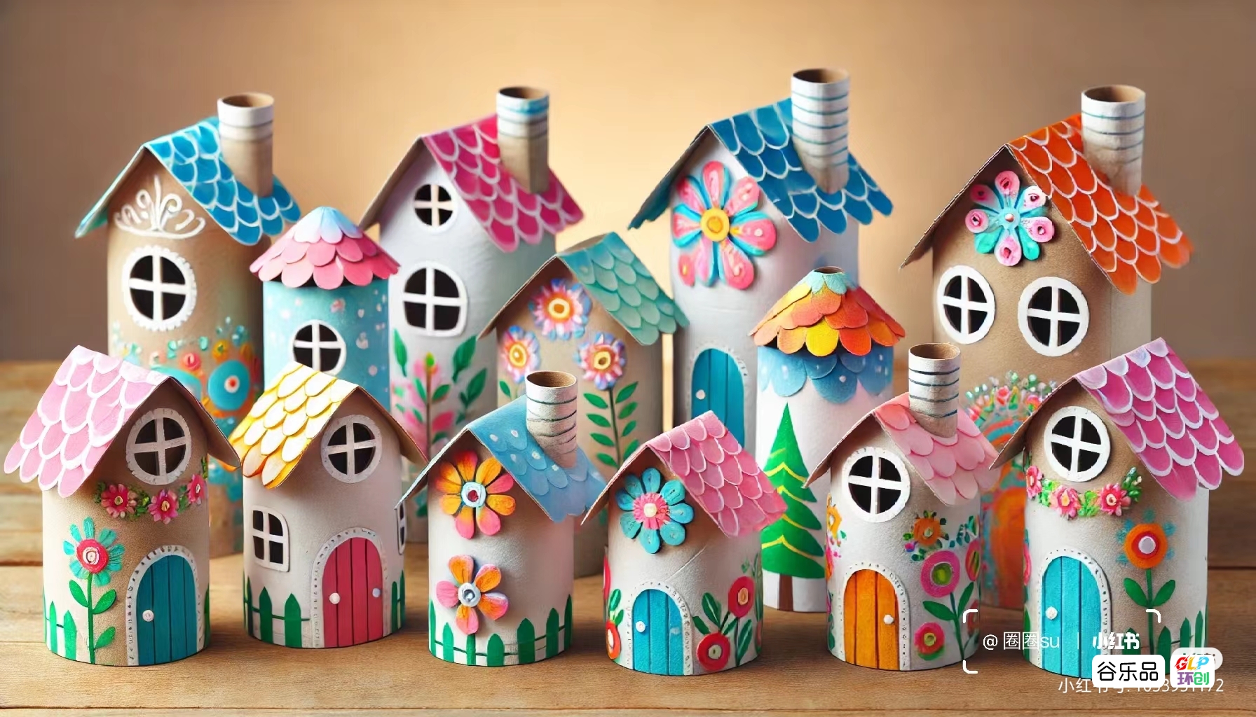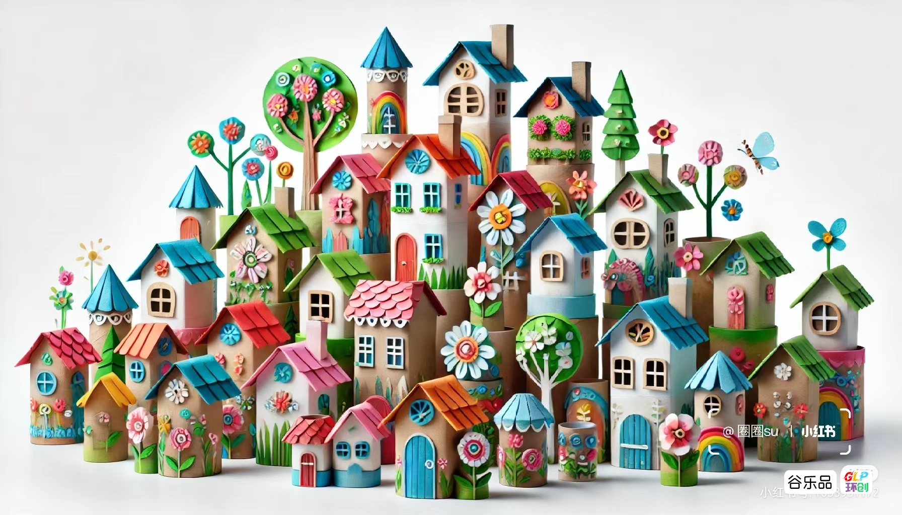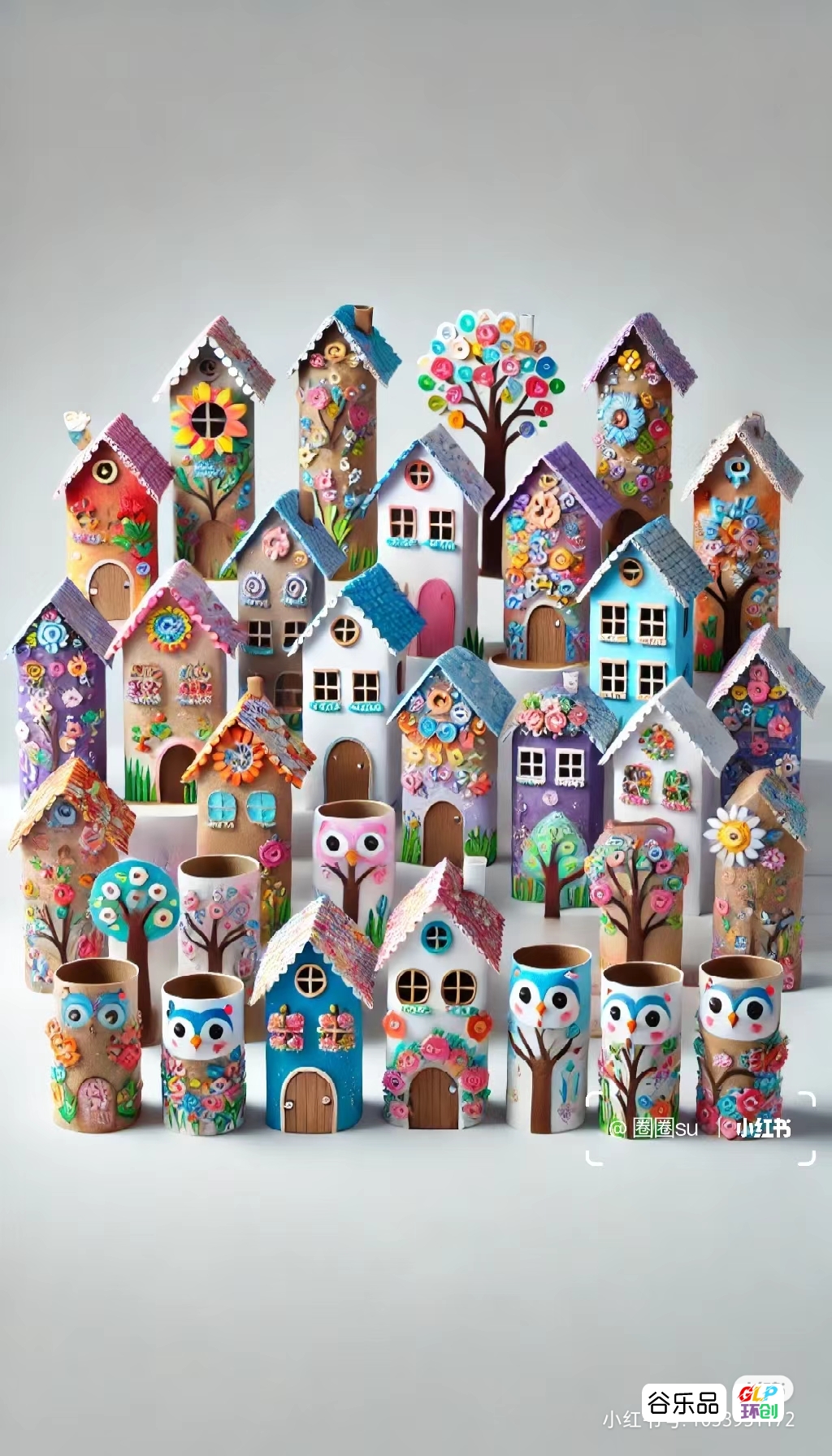 纸筒制作的房子群彩色房子