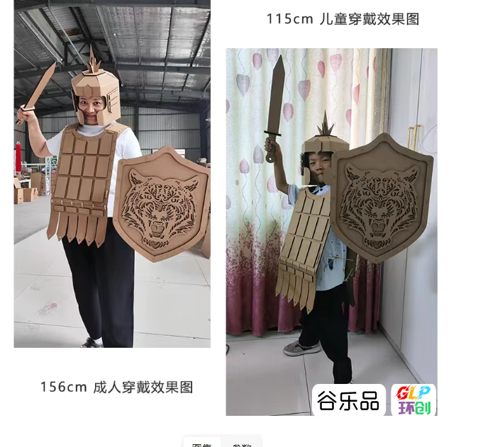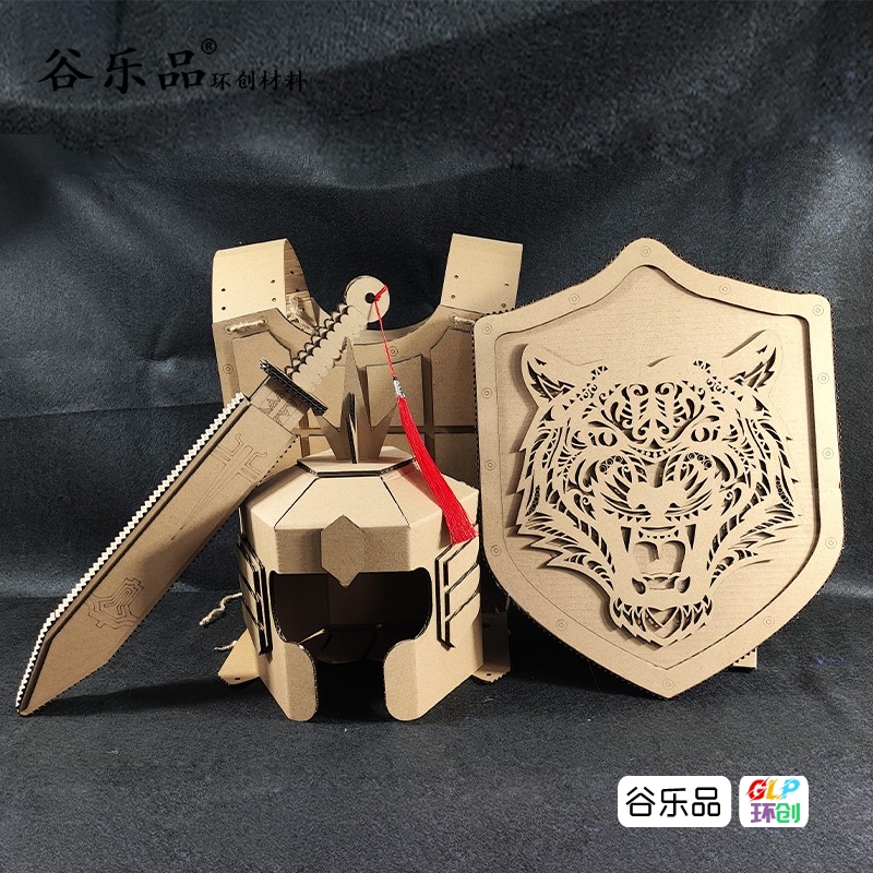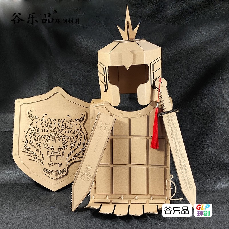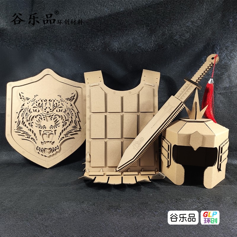 谷乐品瓦楞纸diy手工铠甲宝剑头盔盾牌套装儿童玩具幼儿园材料包