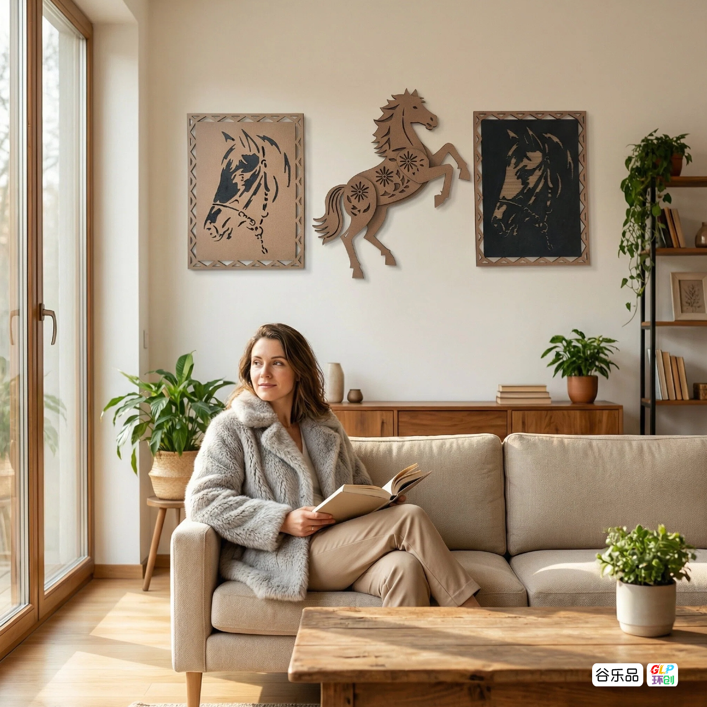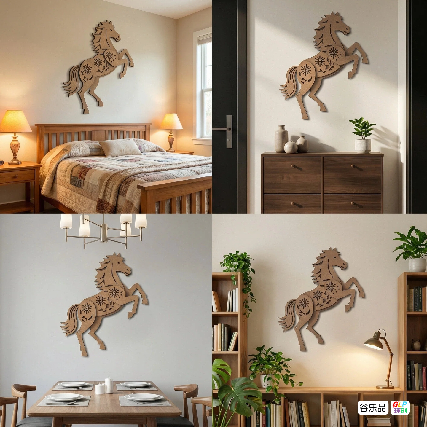 谷乐品环创中式马造型DIY材料手工制作瓦楞纸镂空剪纸装饰品挂画